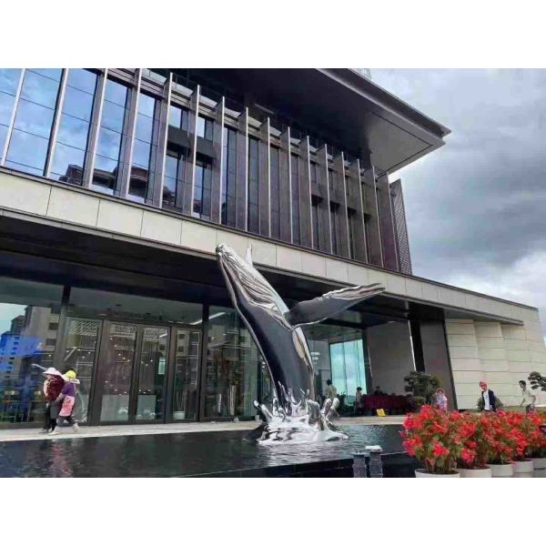 This outdoorlarge animal Sculpture named"Jumping Whale", this Stainless steel sculpture looks very huge and shocked when you saw it firslty. It shows the huge whale jumping posture over the water. This decoration hotel sculpture ornaments was made of Stainless steel by welding and surface made mirror polished to make it looks much more top grade when sunshine reflected.